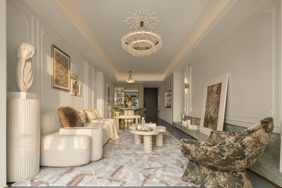 空间中多处装饰将法式热烈的浪漫情调与春日的繁盛景致做了呼应,并融入了春日万物舒展的松弛感。这份精致的审美意趣满载着主人的生活态度,温柔透视出主人对诗意栖居的执着追求。